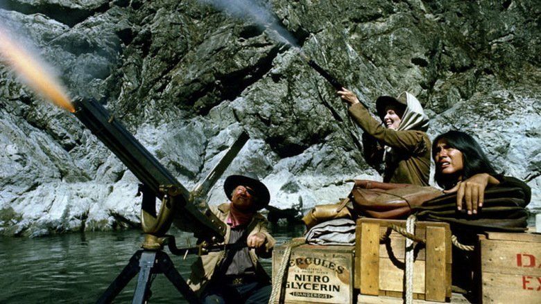 Katherine is following them for revenge because the bandits attacked a fort and killed her father. They catch up with the bandits and take the nitro back, which leads to them going down a river on a raft when they have their final confrontation with the bandits by blowing up a bunch of the nitro. The chemistry between Hepburn and Wayne is much better than in the previous Cogburn movie.